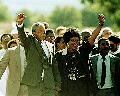 Le Cap: Nelson Mandela, nouvellement élu, au balcon de l'Hôtel-de-Ville (9 mai 1994)
